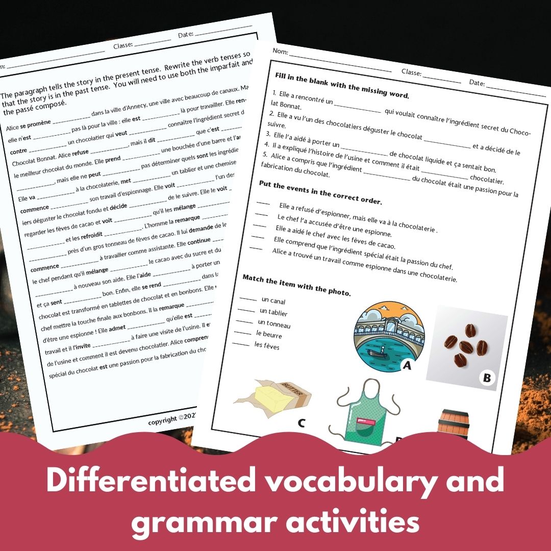 - A plot synopsis in French, in the past tense (passé composé, imparfait, and any others as grammatically required) with comprehension questions in French.
