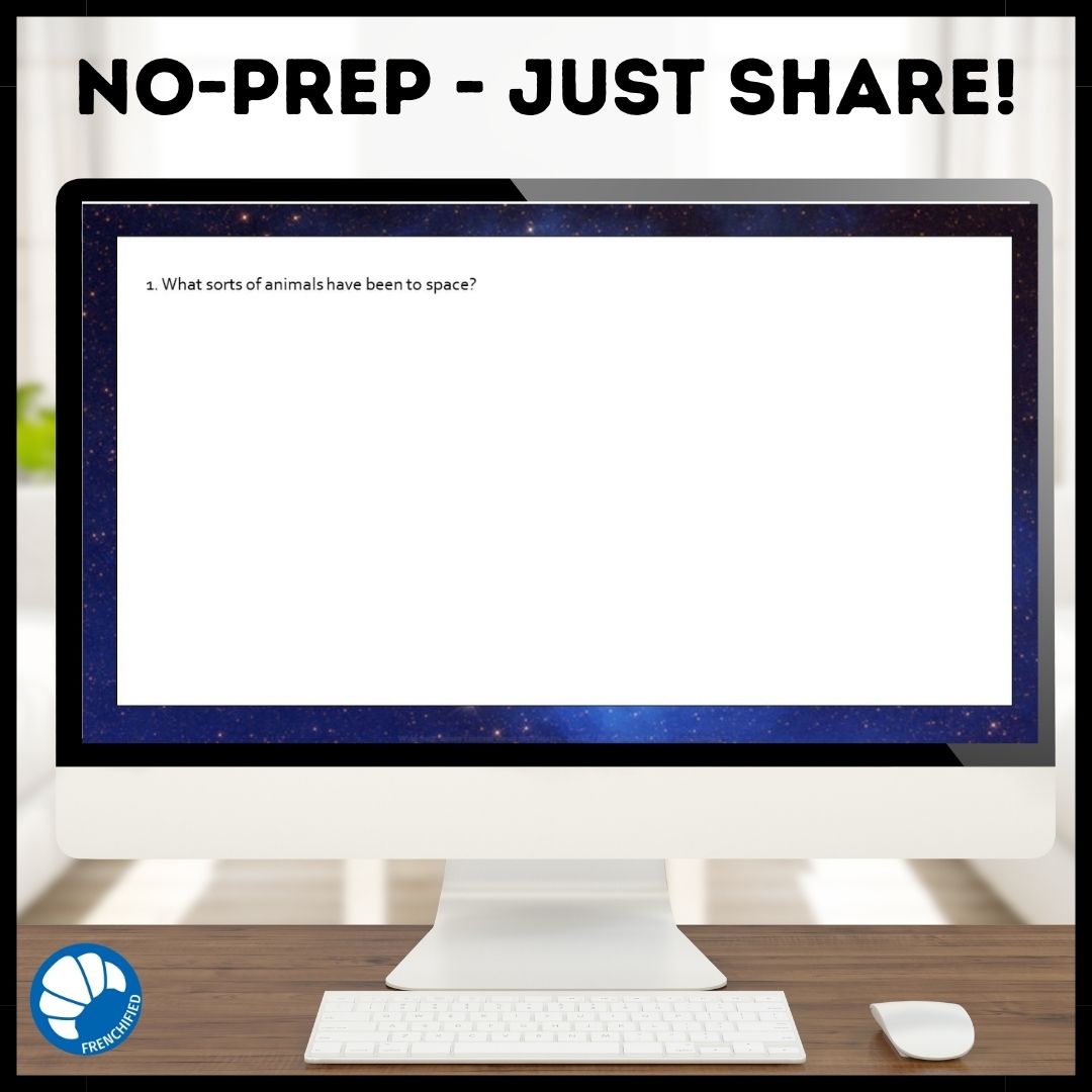 This French reading comprehension activity will teach your students about animals in space. It is suitable for novice-high/intermediate-low students with teacher guidance and higher level students to work independently. If you teach AP French, this reading can be useful in giving your students practice reading non-fiction articles for the interpretive section of the test. The reading can lead to discussion or writing activities to include the other two modes of communication.