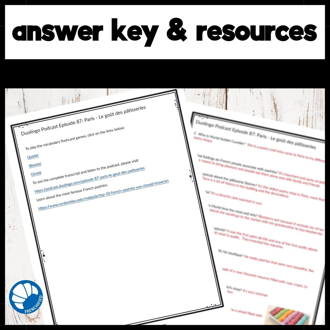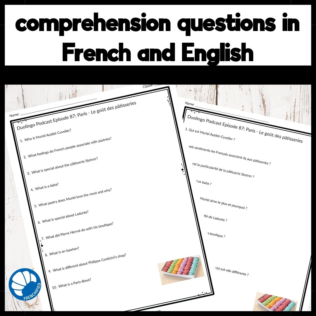 These Activities to accompany French Duolingo Podcast Episode 87: Le goût des pâtisseries will help your students with their listening comprehension skills while also entertaining them.
