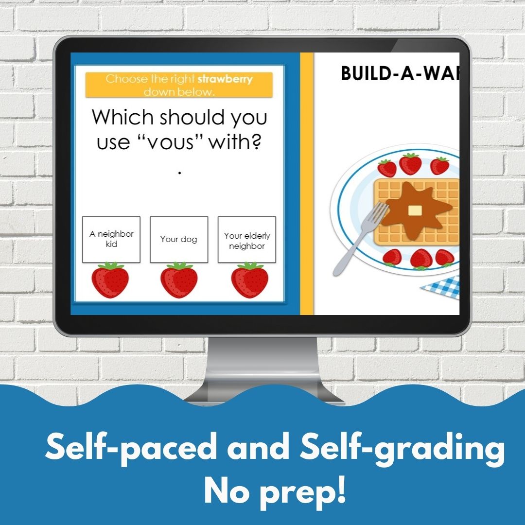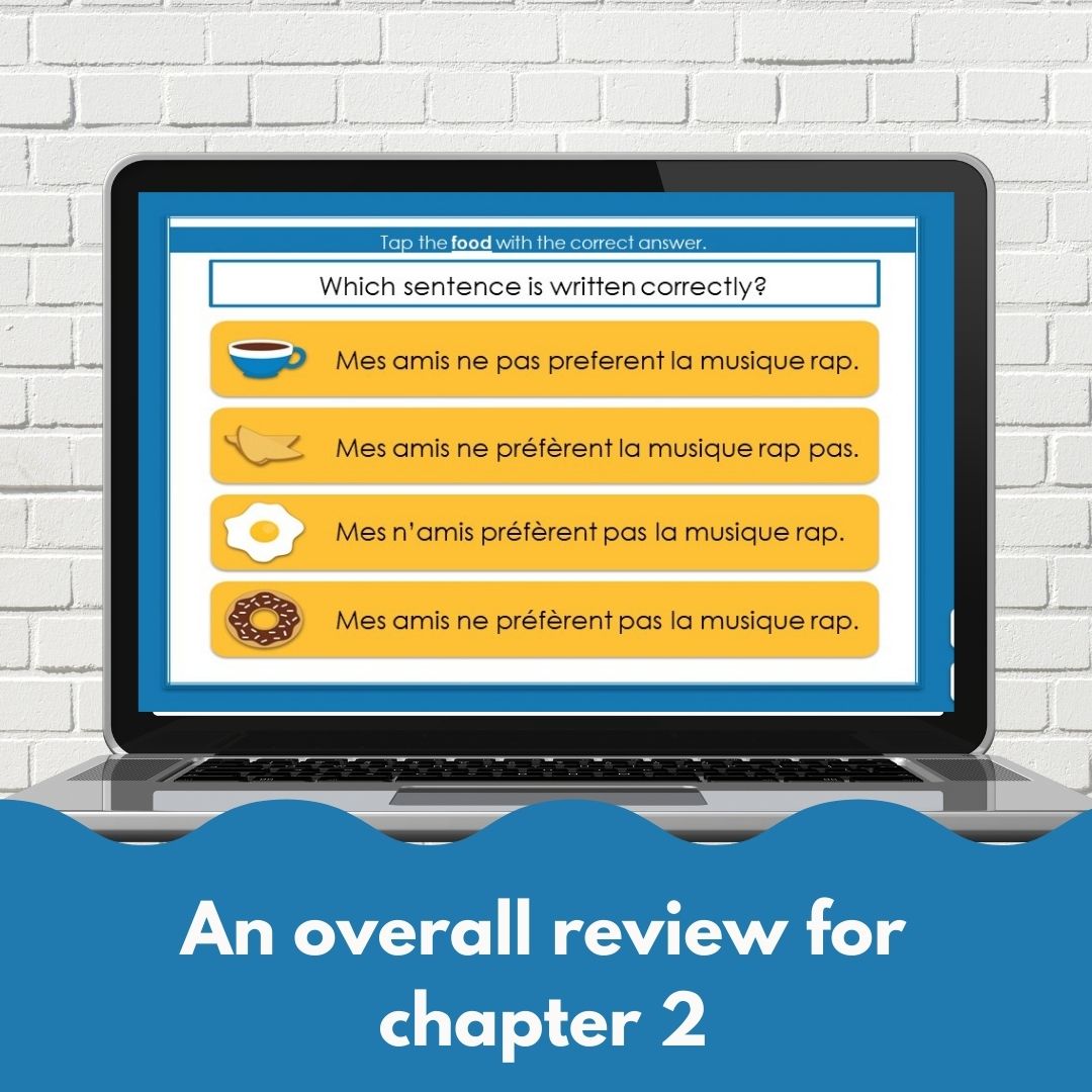 This French level 1 unit 2 digital review game will give your students a quick and fun way to review everything from unit 2 from a popular French textbook series. Answer questions and work through the game, it gives a quick recap of everything that is taught in unit 2. That would include: