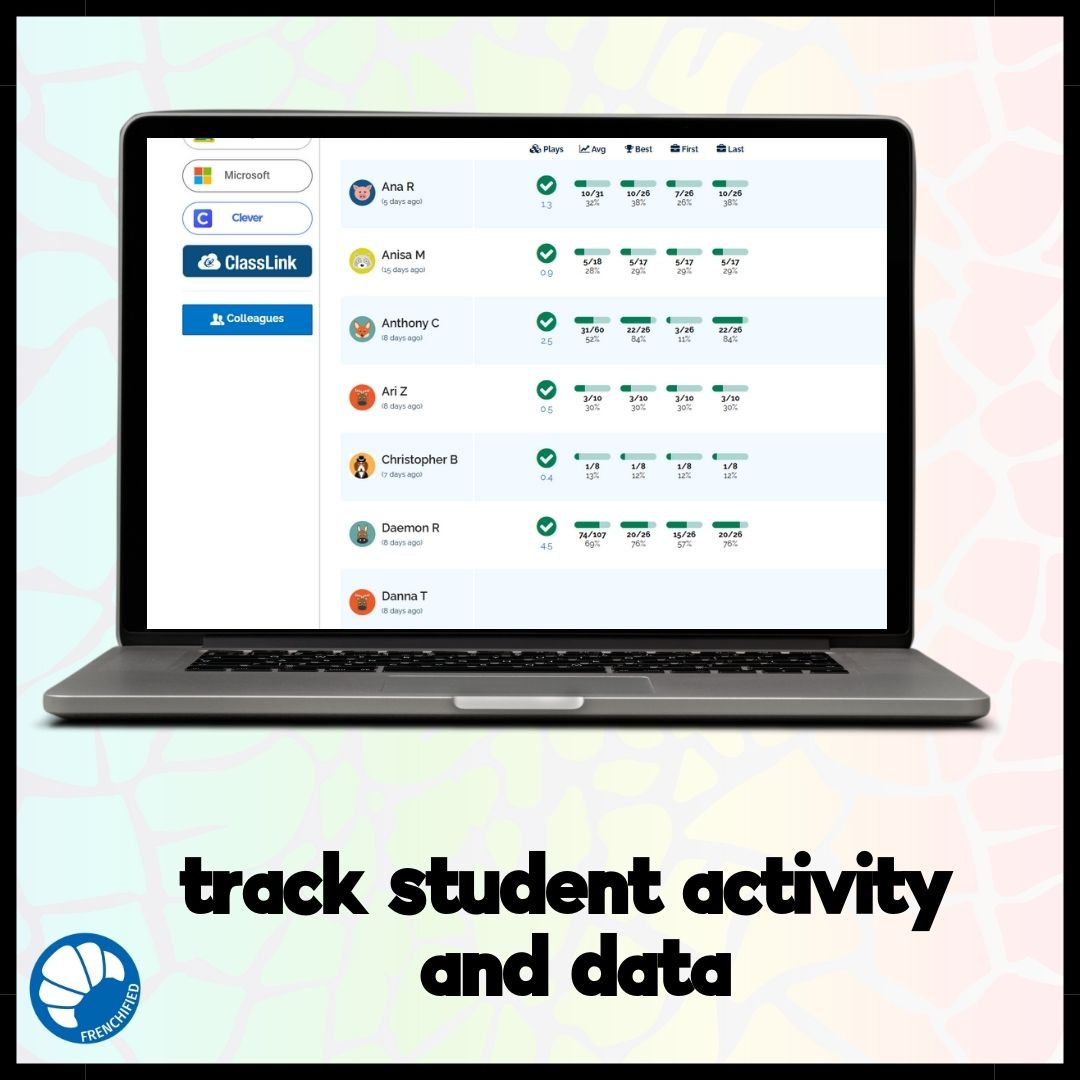With a Boom learning account, you will be able to track student movement through the deck, as well as data such as time spent on the deck, high score, average score, and which questions students have missed.