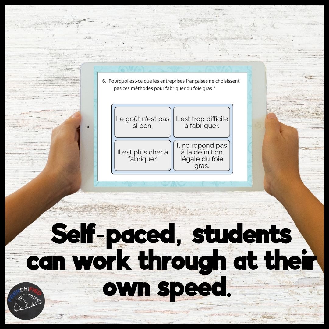 Assign the cards you want students to do, with the English questions, the French questions, or a mixture of both. All questions are self-grading.