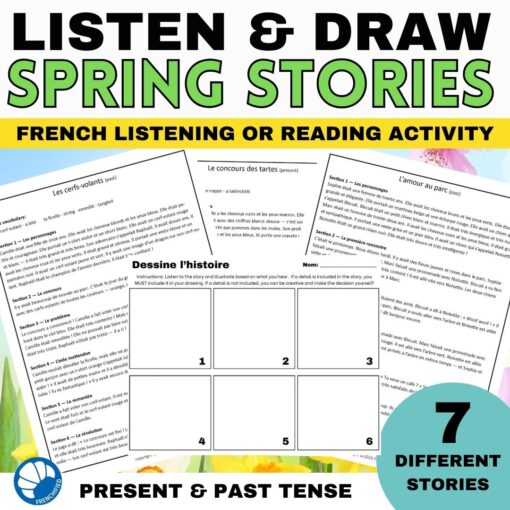 Each French listen and draw story has a spring theme and limited vocabulary. While the stories are short, they have a clear plot with a beginning, middle and end.