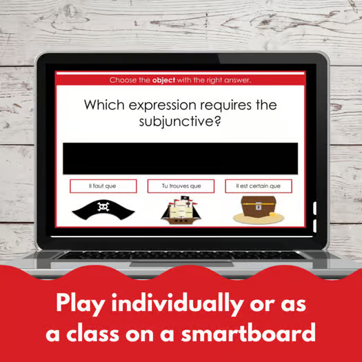 This French subjunctive digital game will allow your students to practice using the French subjunctive. Includes questions about the rules for when you should use it, choosing the correct conjugated form, and choosing which phrases trigger the subjunctive.
