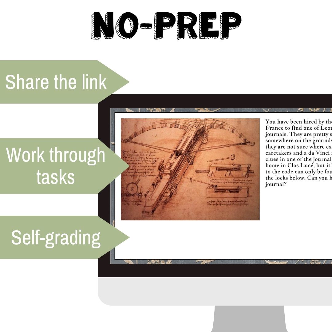 Prep is very easy – you just need to share the website URL with your students. You may want to test the site before you use it, just to make sure nothing is blocked by your district. As some of the clues can be challenging to unlock, you may choose to help your students with the trickier ones. With the teacher guide, you will have the answer key – so you can help guide students towards the correct answer by giving them hints, or if you have limited time, you can adjust the game by reducing the number of locks they need to unlock – just give them the answer(s) to help the activity fit your time constraints.