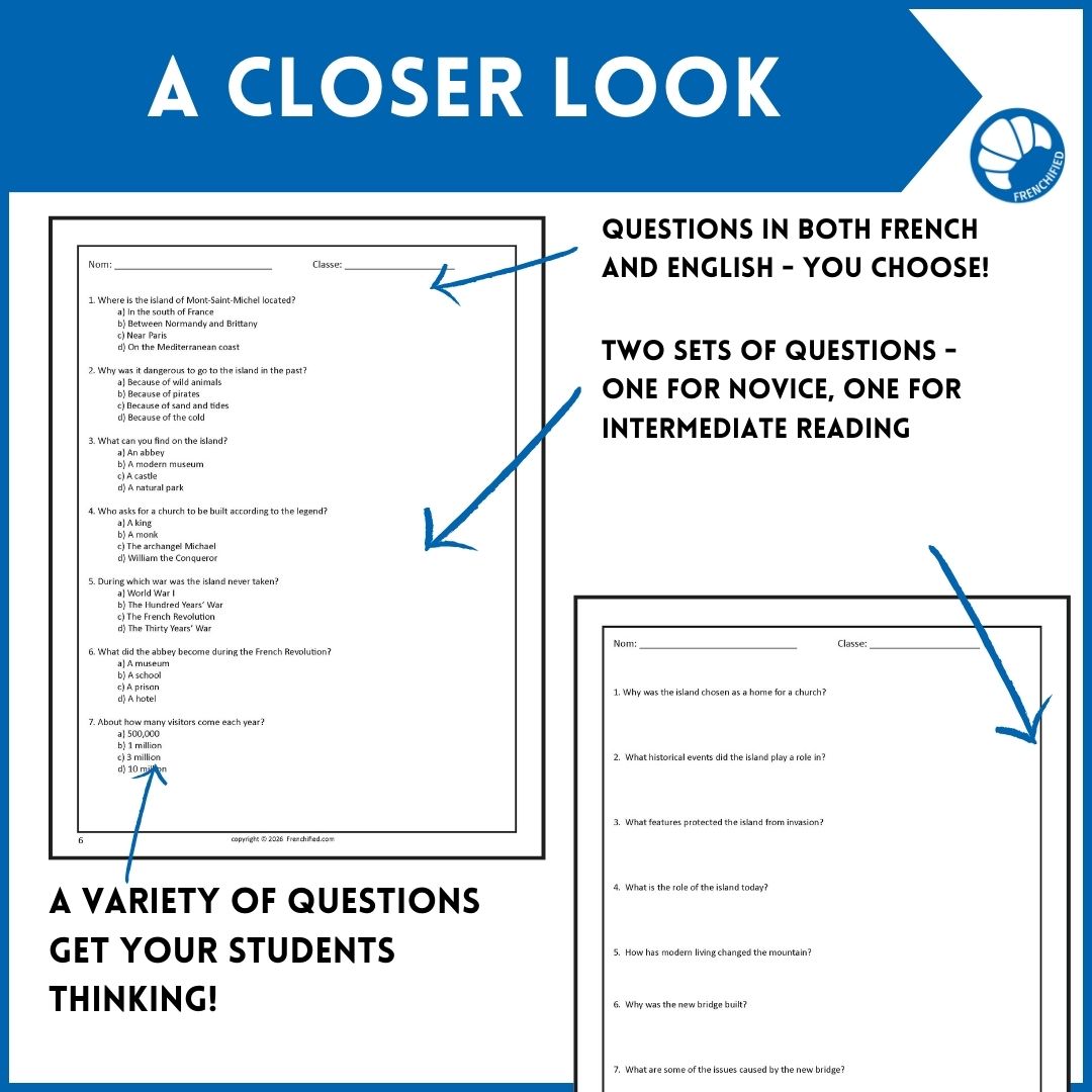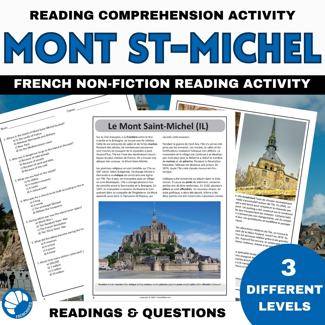 This Mont Saint-Michel French reading comprehension activity will teach your students about the monument of Mont Saint-Michel.