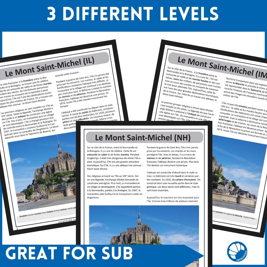 - 3-page article in intermediate mid French about Mont Saint-Michel