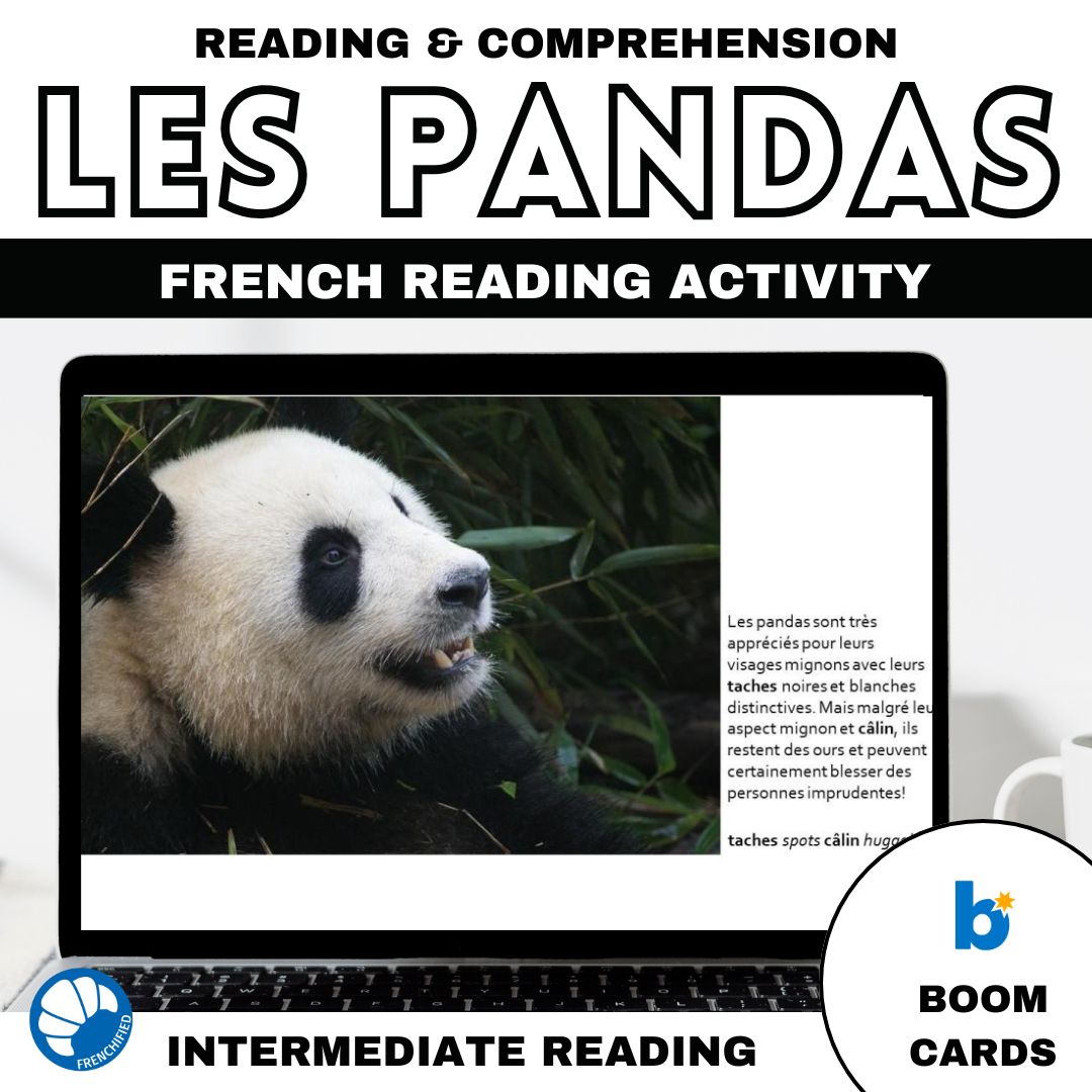This Pandas French reading activity will teach your students about the giant panda and the issues challenging it. It is suitable for novice-high/intermediate-low students with teacher guidance and higher level students to work independently. If you teach AP French, this reading can be useful in giving your students practice reading non-fiction articles for the interpretive section of the test. The reading can lead to discussion or writing activities to include the other two modes of communication.