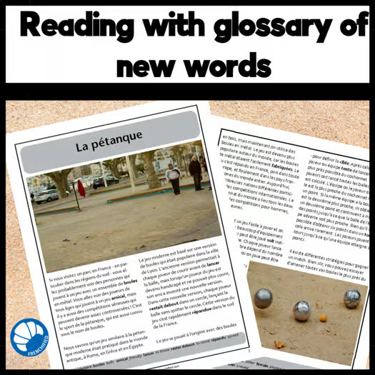 This Pétanque French reading comprehension activity will teach your students about the sport of pétanque. It is suitable for novice-high/intermediate-low students with teacher guidance and higher level students to work independently. If you teach AP French, this reading can be useful in giving your students practice reading non-fiction articles for the interpretive section of the test in the contemporary life theme. The reading can lead to discussion or writing activities to include the other two modes of communication.