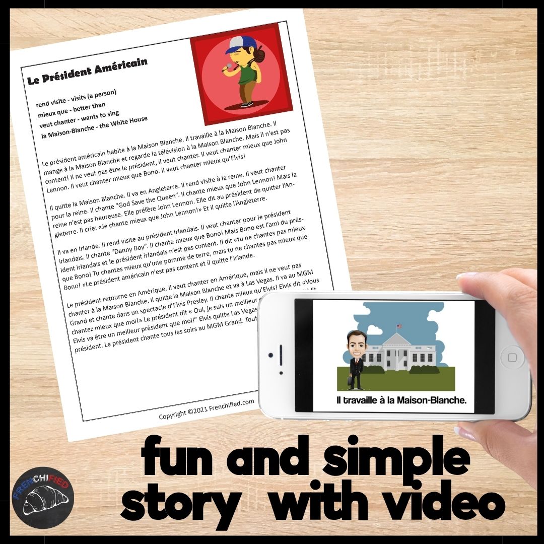 Make learning French fun with this Président Américain French CI Lesson plan and story. This lesson plan includes a story with targeted structures that can be repeated to give your students lots of repetitions. Comprehension activities to use after the story will allow you to engage your students and makes sure that your French lesson is truly comprehensible input.
