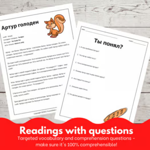 This Russian bundle 1 includes four simple, comprehensible input Russian lesson plans and stories. Each lesson plan includes a story with targeted structures that can be repeated to give your students lots of repetitions. Comprehension activities to use after the story will allow you to engage your students and make sure that your Russian lesson is truly comprehensible input.