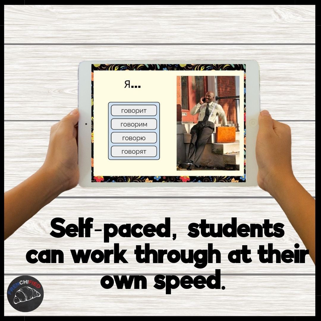 Looking for a helpful and fun way to practice Russian Type 2 verb Conjugation? It’s easy with our Russian Type 2 Verb Conjugation Practice Boom Cards! Our cards help kids learn to choose the correct verb form to go with the Russian verb, allowing them to gain mastery of this important language skill. With five essential verbs—говорить, звонить, спешить, помнить and Любить—there’s plenty here for students of any level. Plus, our practice cards are full of self-correcting digital tasks that make it easier for students to check their work on the fly and get immediate feedback. Help your students become experts in the conjugation of Russian Type 2 verbs with our easy-to-use digital task cards today!