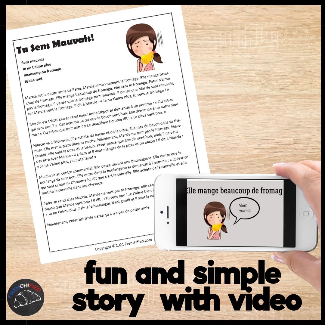 Make learning French fun with this Tu Sens Mauvais French CI Lesson plan and story. This lesson plan includes a story with targeted structures that can be repeated to give your students lots of repetitions. Comprehension activities to use after the story will allow you to engage your students and makes sure that your French lesson is truly comprehensible input.