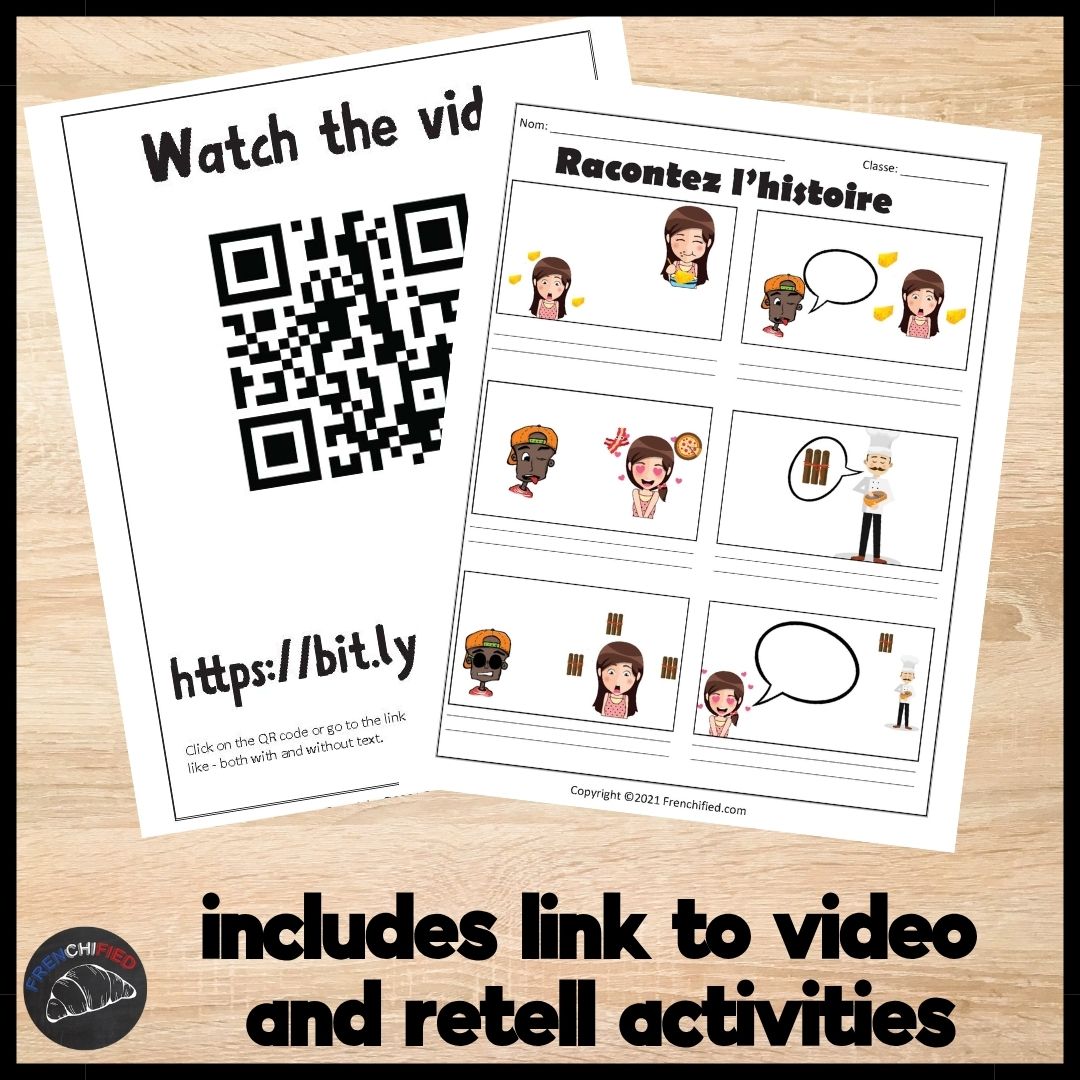 There is a second version of the video with only the illustrations – no text – so you can watch it and do story retells. With novice low and novice mid learners, you can tell the story as is. For novice high learners, you can add more details or write a parallel story. You could even use this story at higher levels by having students retell the story in the past.