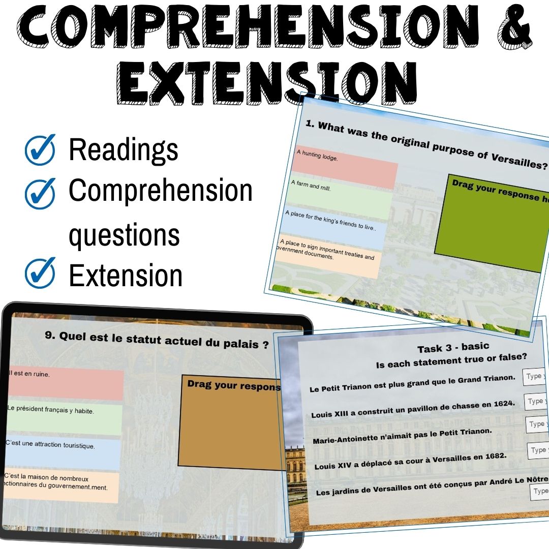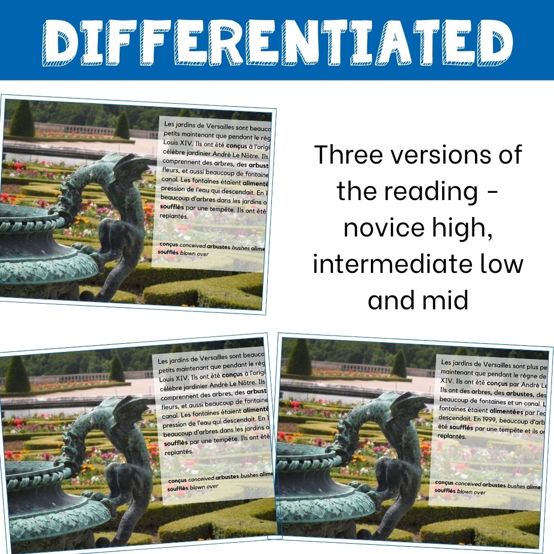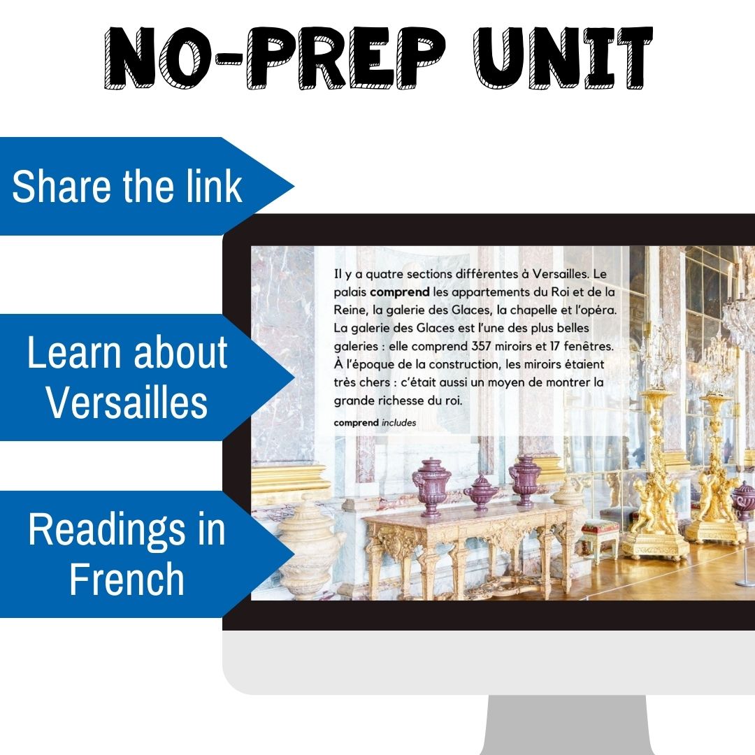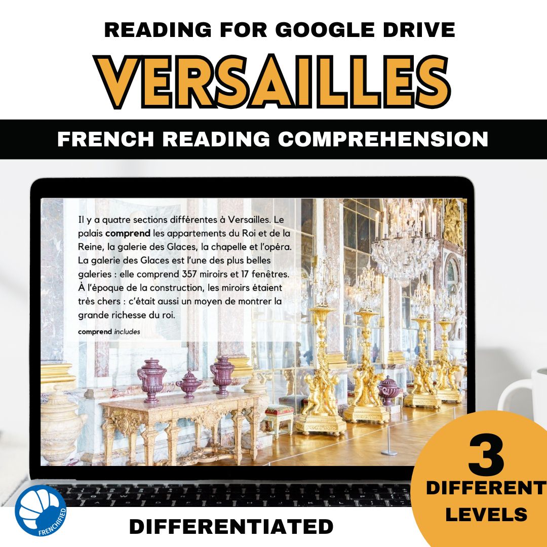 This digital intermediate Versailles French reading activity will teach your students about the palace of Versailles. Versailles began as a simple hunting lodge but became the symbol for power and extravagance. Learn the history of this palace and its role in consolidating the power of the king.